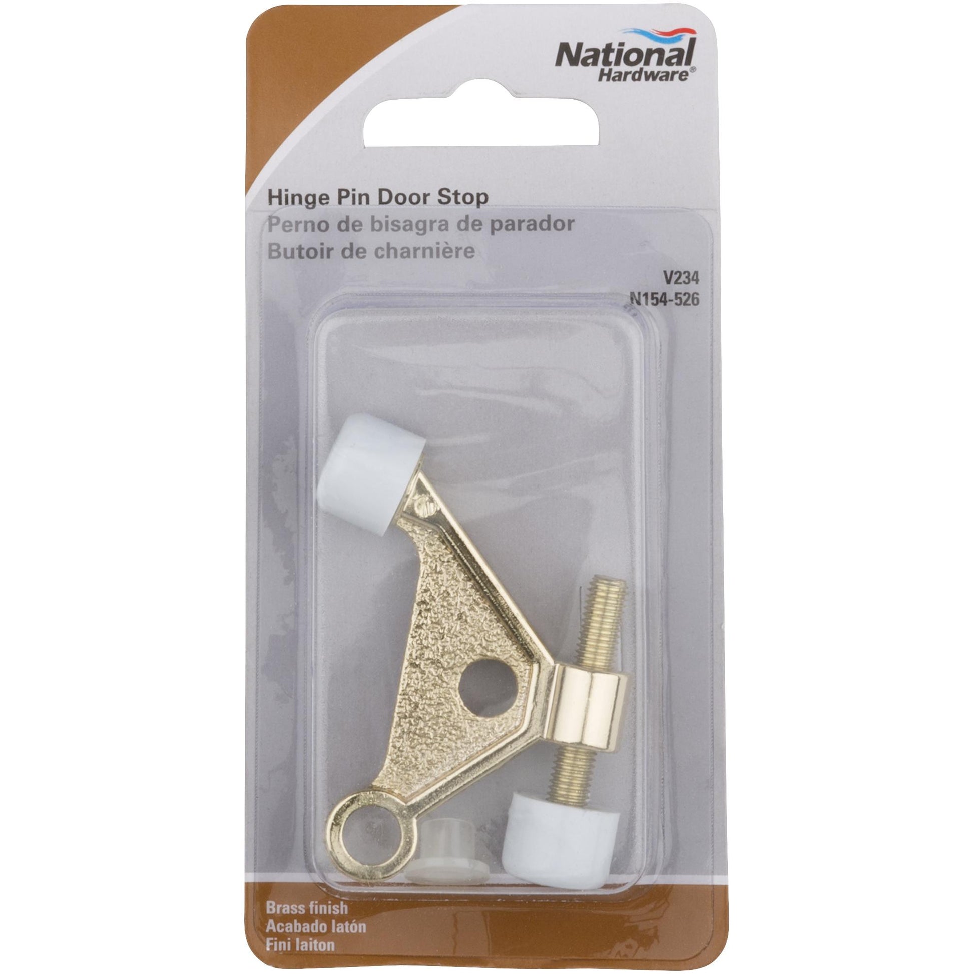 National Hardware's Hinge Pin Door Stop is designed to mount on a door hinge to prevent damage to wall.