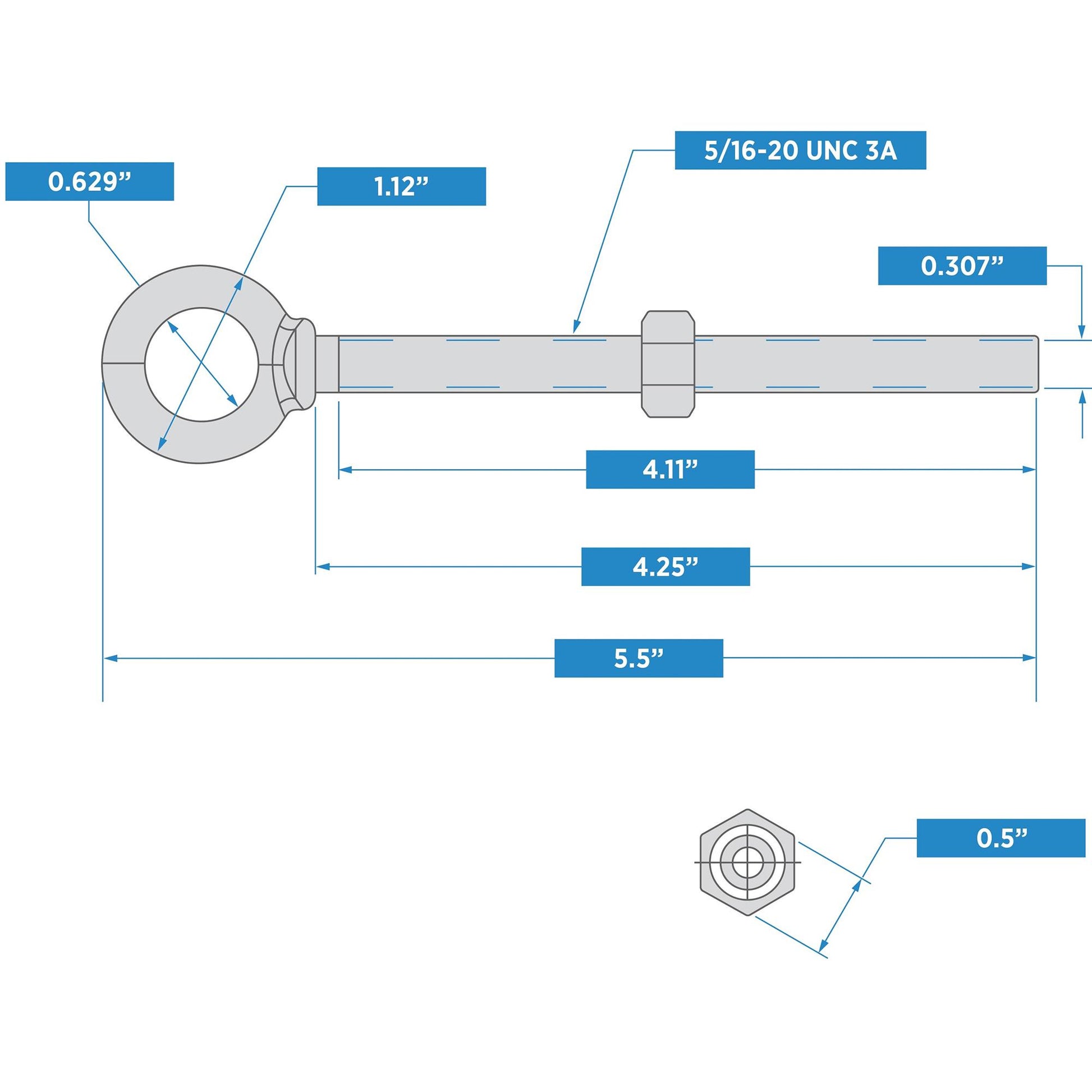 3260BC 5/16" x 4-1/4" Forged Eye Bolt with Shoulder - Galvanized