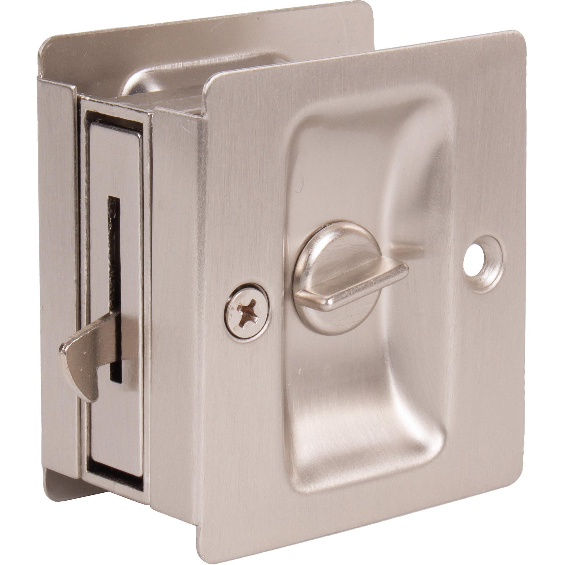 Stone Harbor Hardware Premium Square Pocket Door Lock, Privacy Function, Satin Nickel