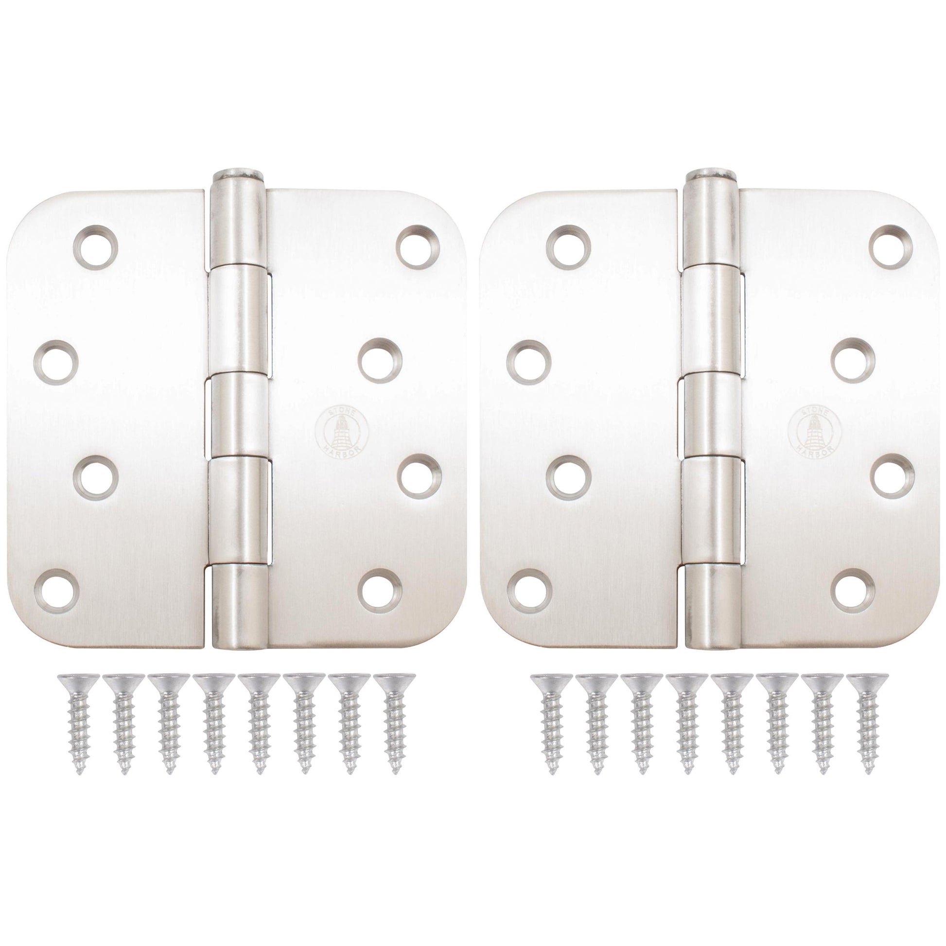 Stone Harbor Hardware 4" Door Hinges, 5/8" Radius Corner, Satin Stainless Steel, 2-Pack