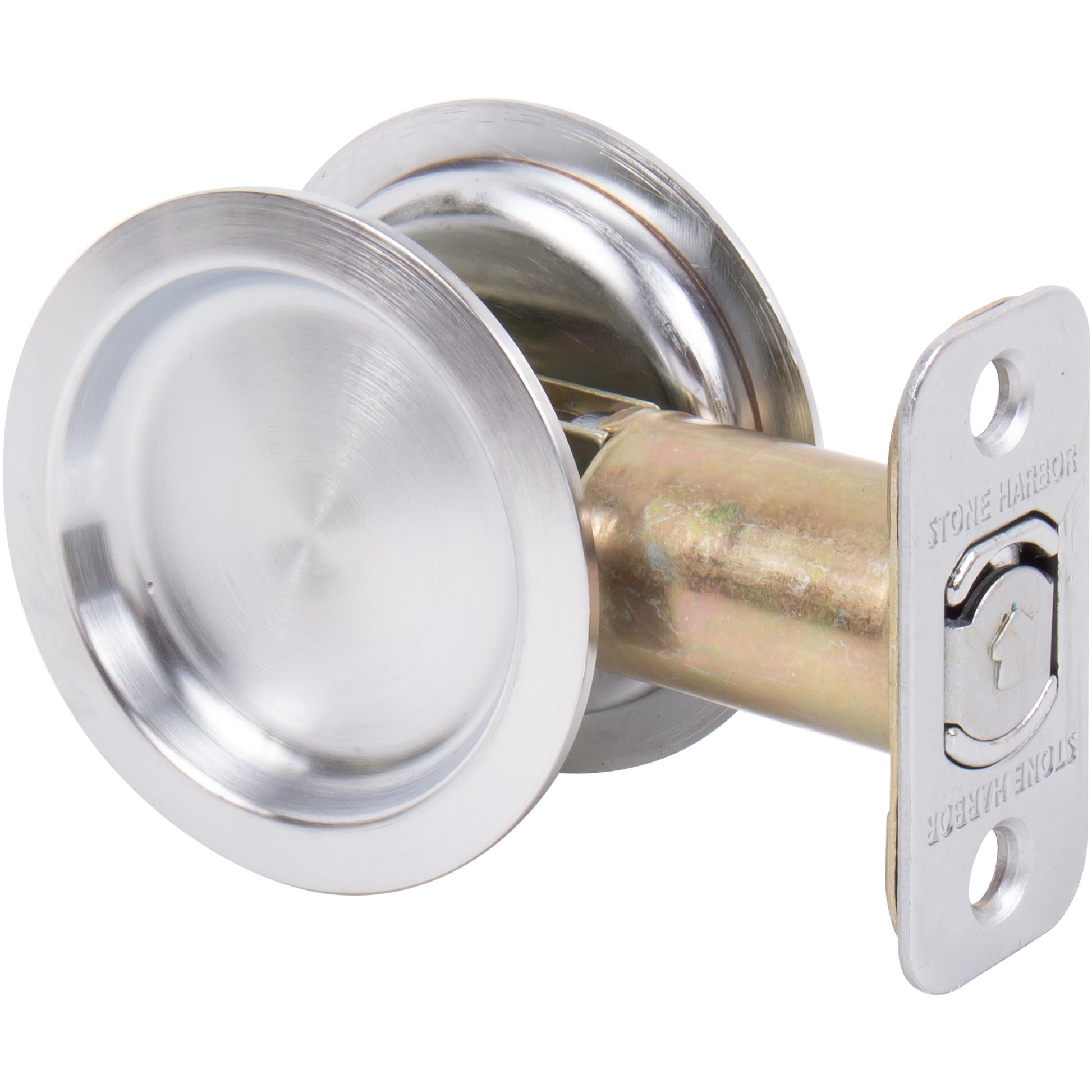Stone Harbor Hardware Round Pocket Door Lock, Passage Function, 2-3/8" Backset, Satin Chrome