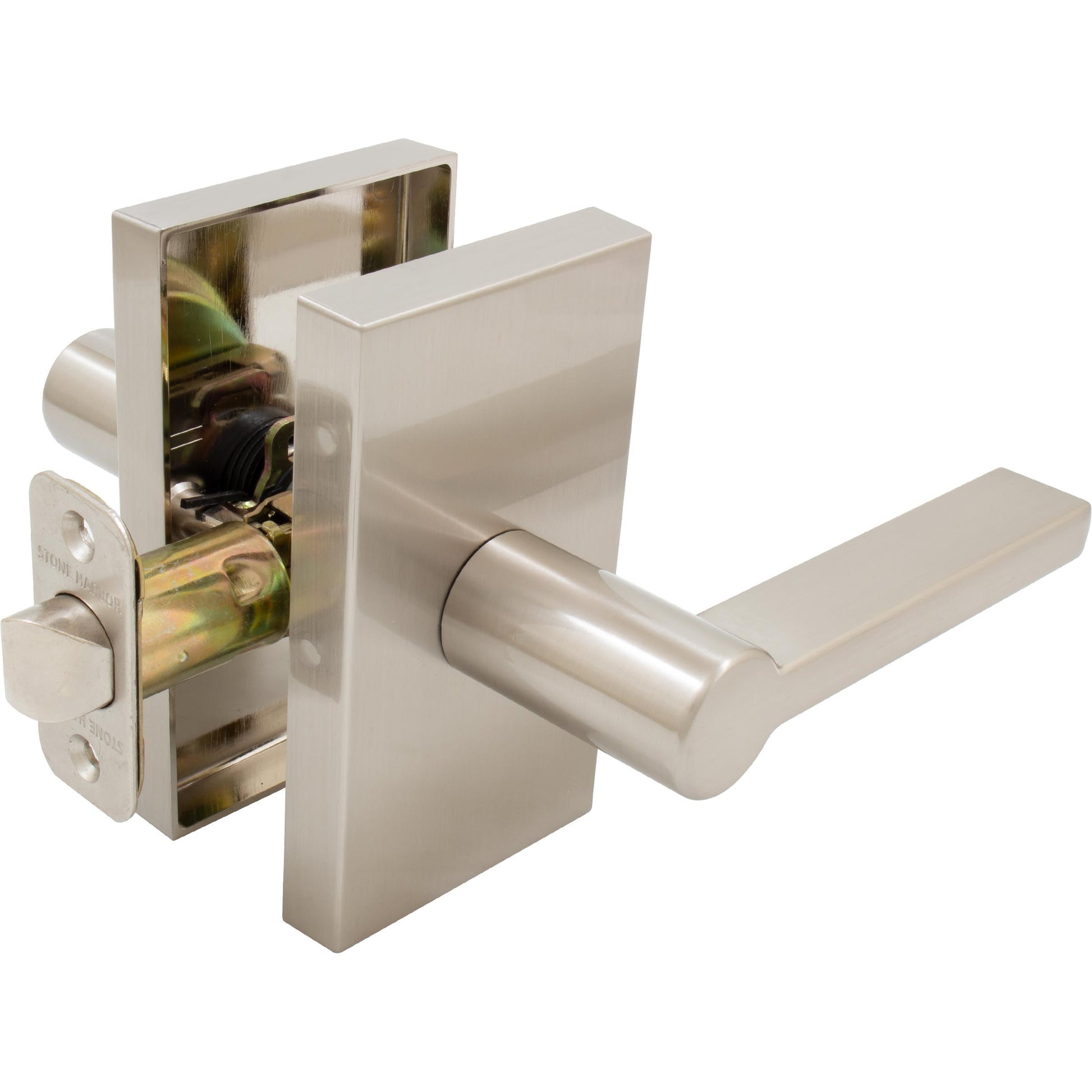 Stone Harbor Hardware Vienna Door Lever with Rectangular Rosette, Passage (Hall/Closet) Latch, Satin Nickel