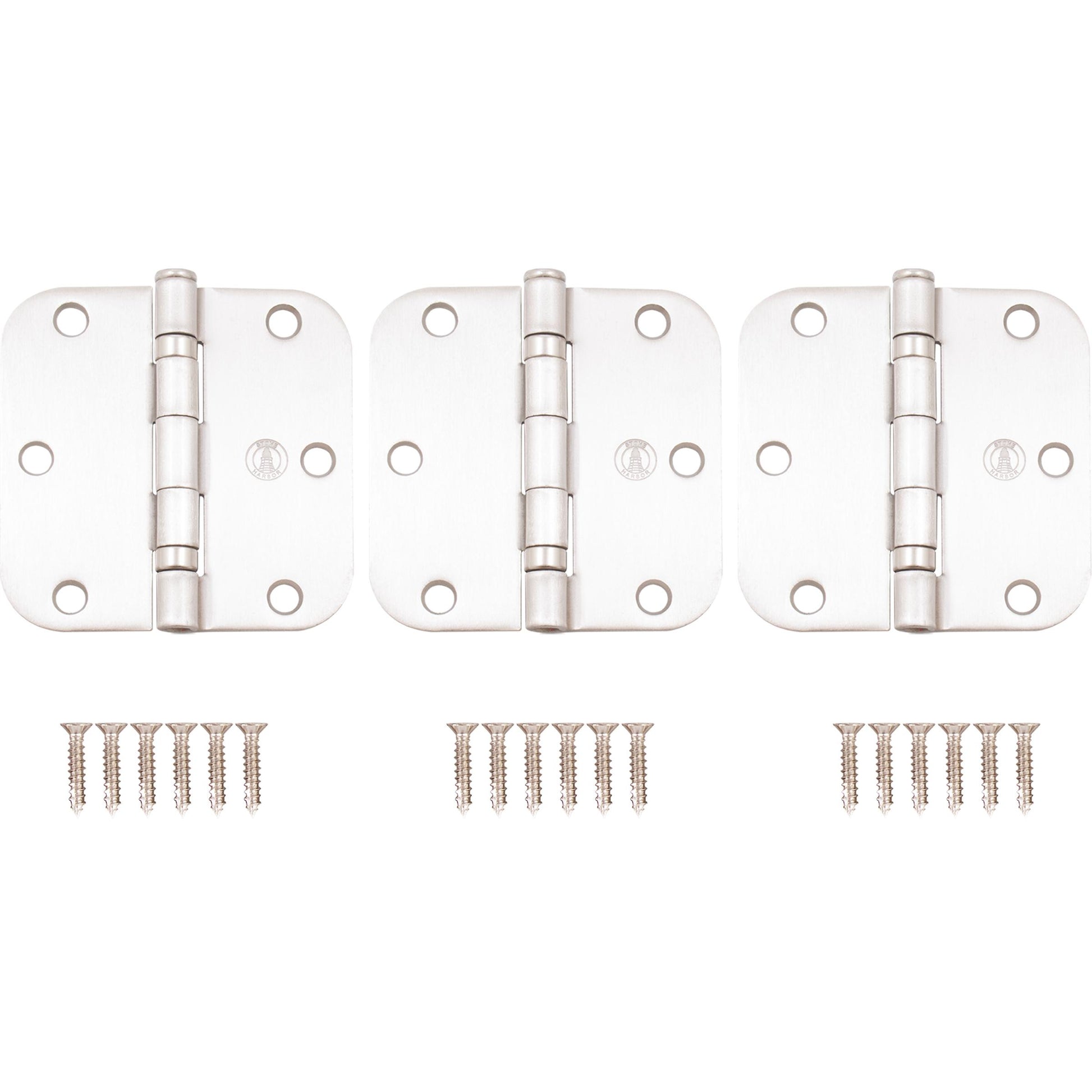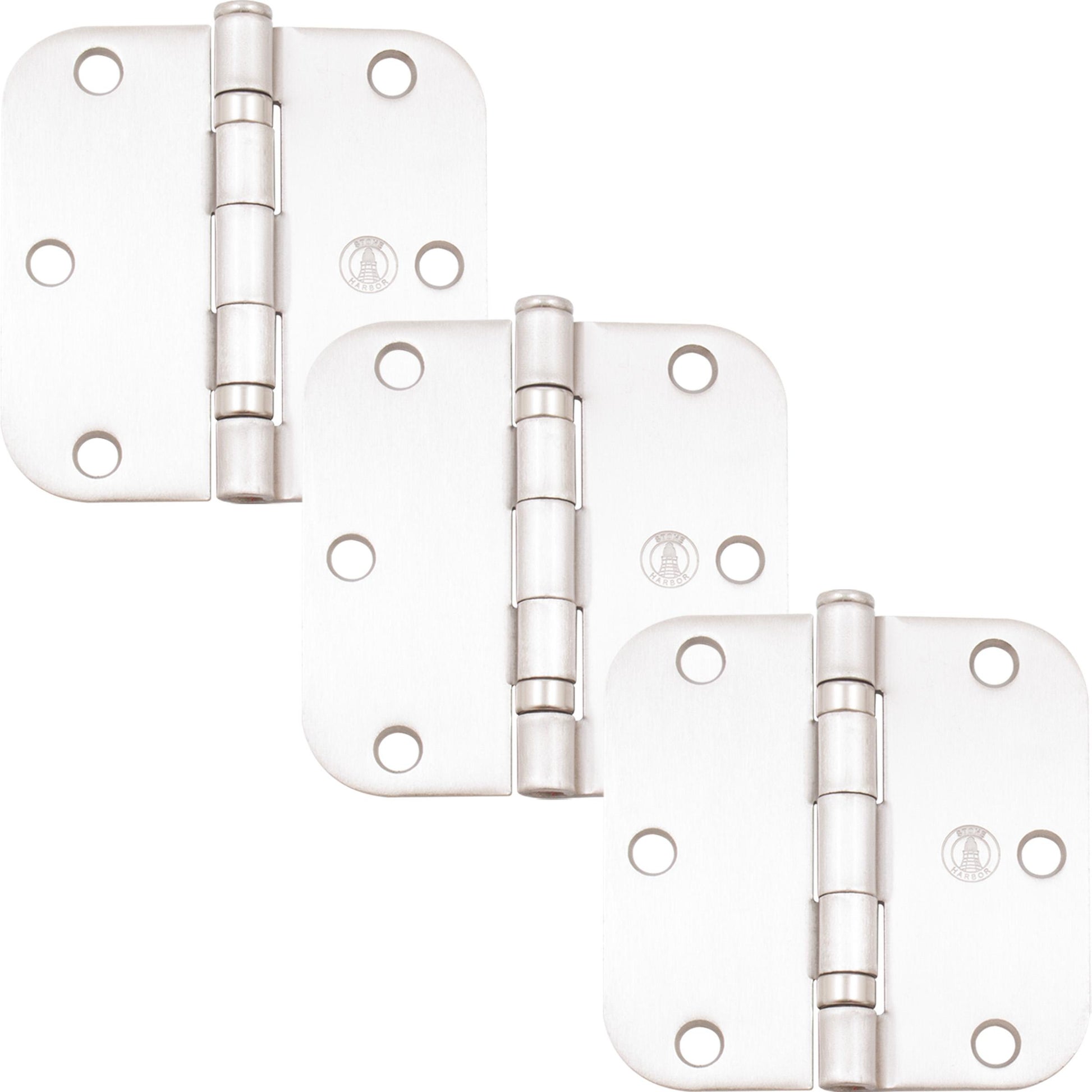 Stone Harbor Hardware 3-1/2" Ball-Bearing Door Hinges, 5/8" Radius Corner, Satin Nickel, 3-Pack
