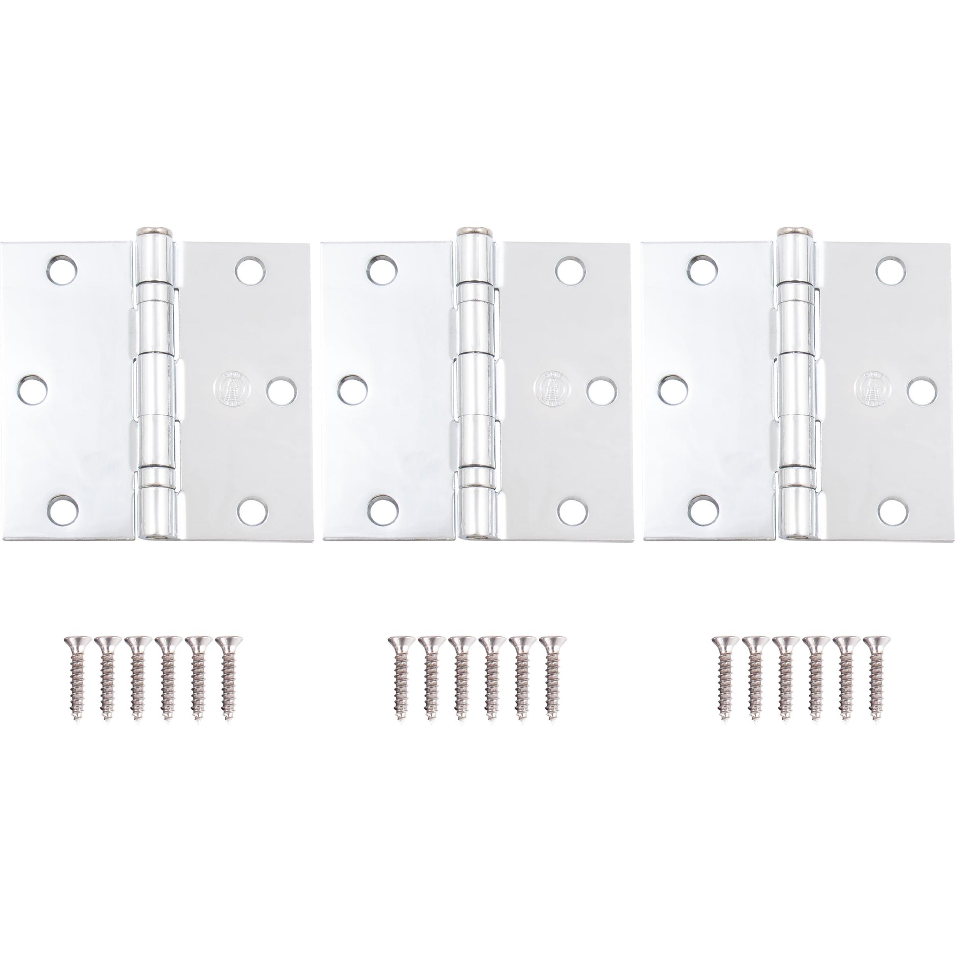 Stone Harbor Hardware 3-1/2" Ball-Bearing Door Hinges, Square Corner, Polished Chrome, 3-Pack