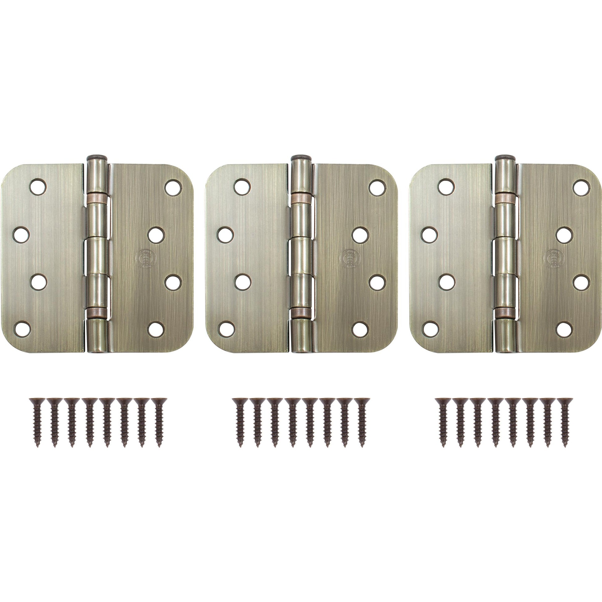 - EASY INSTALLATION: To accommodate customers of various levels of experience, 5/8" radius corner ball-bearing door hinges come equipped with all necessary mounting hardware, including #9 x 1" wood screws.
