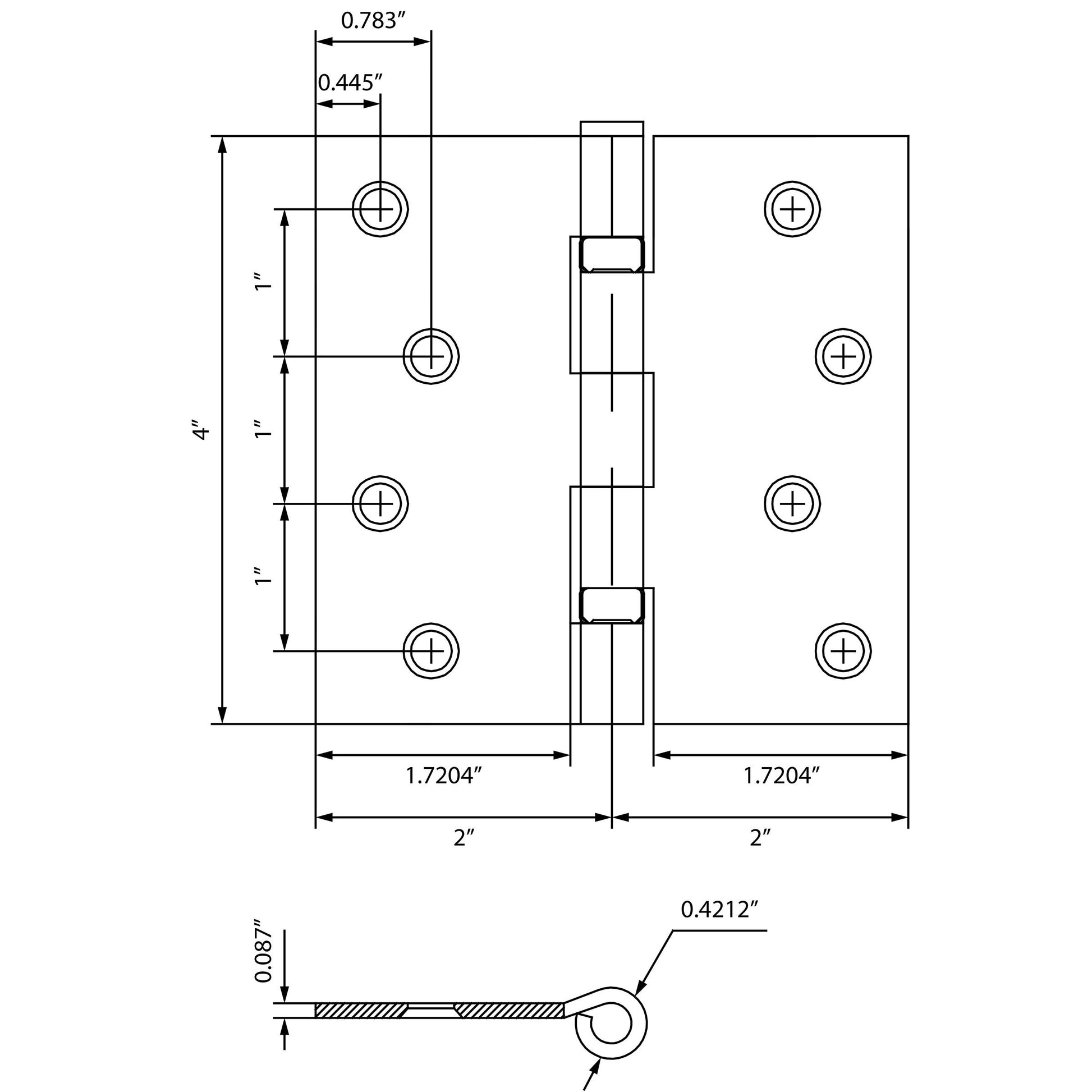 - DURABLE CONSTRUCTION: Manufactured from durable steel, these ball-bearing door hinges measure 4 inches by 4 inches and 0.087 inches (2.2 mm) thick.