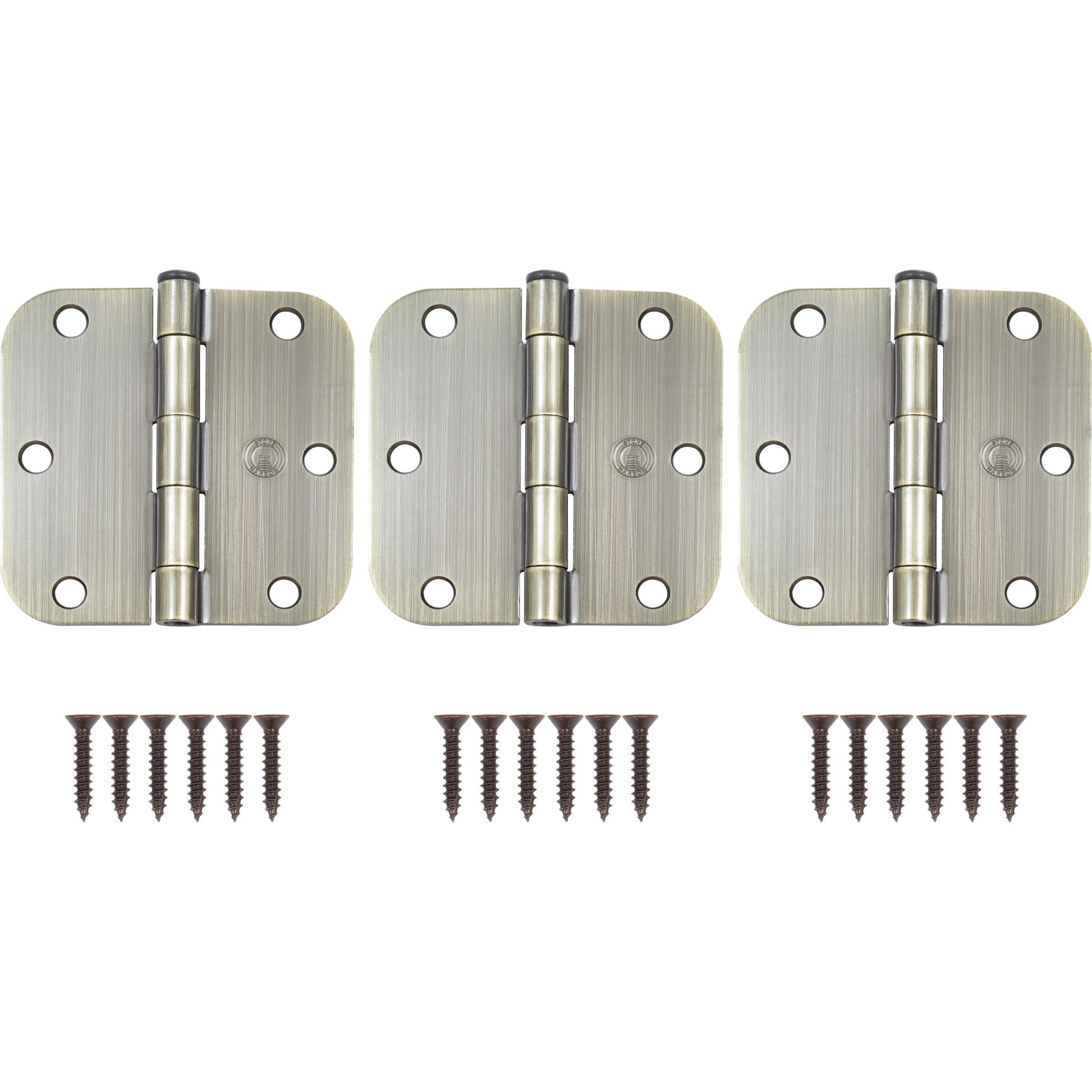 Stone Harbor Hardware 3-1/2" Door Hinges, 5/8" Radius Corner, Antique Brass, 3-Pack
