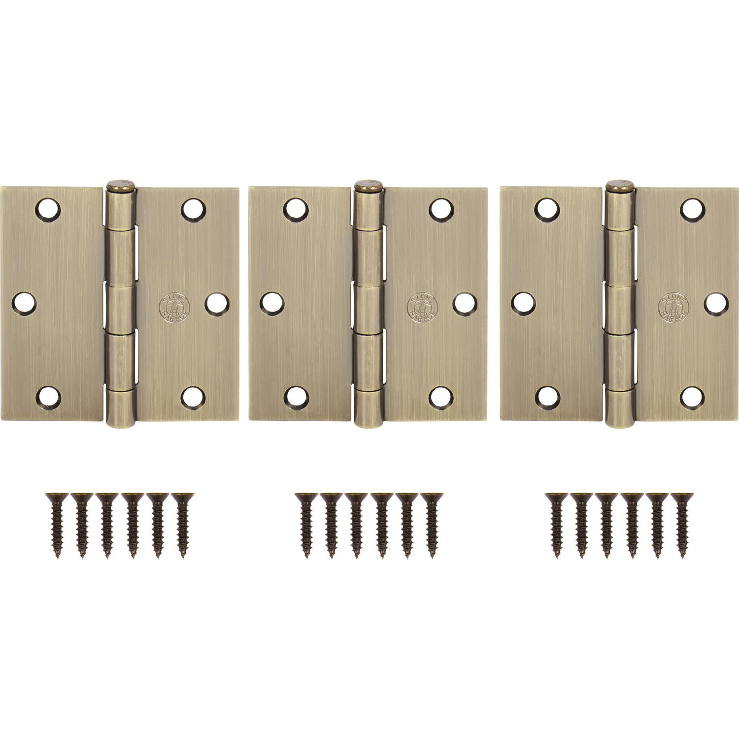 Stone Harbor Hardware 3-1/2" Door Hinges, Square Corner, Antique Brass, 3-Pack