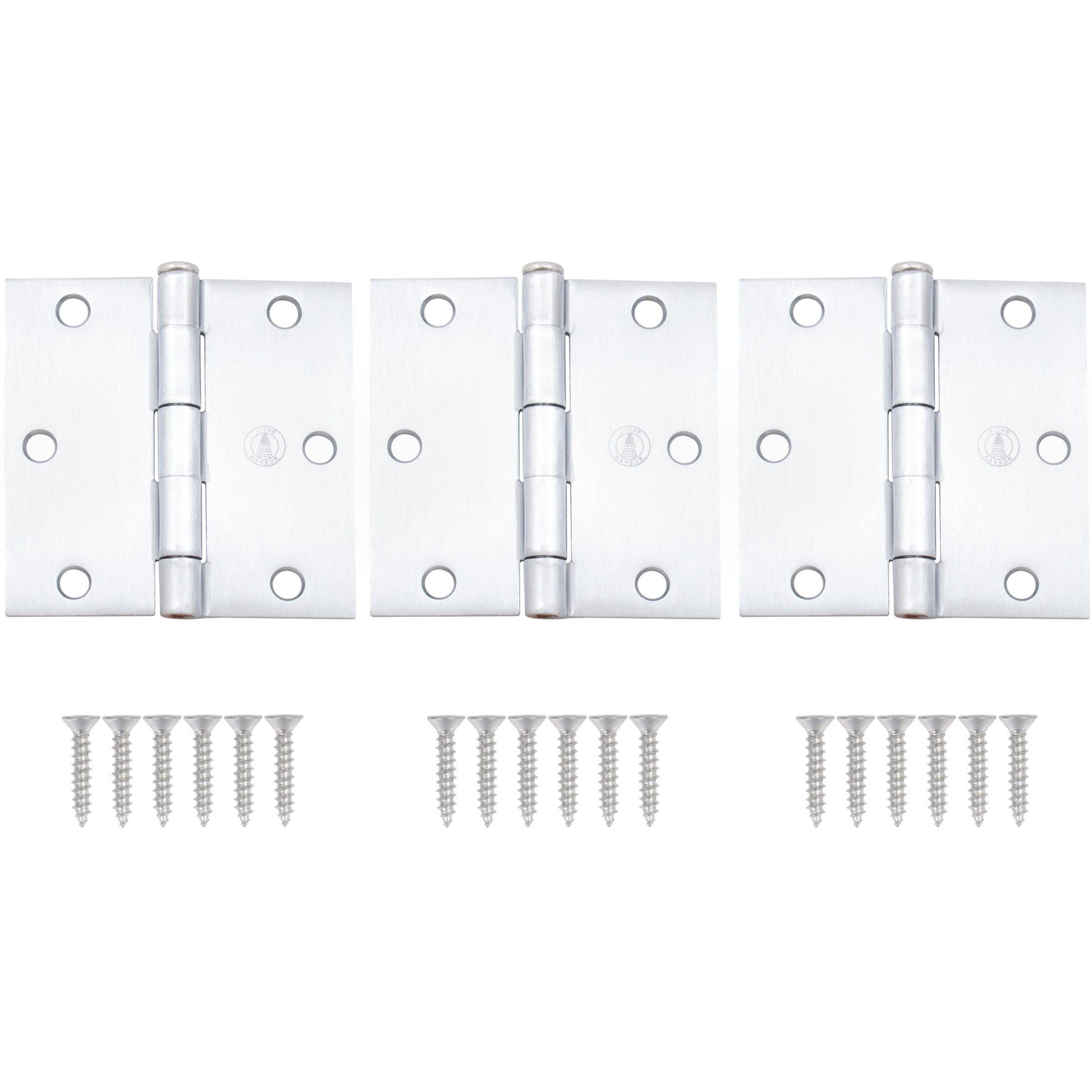 Stone Harbor Hardware 3-1/2" Door Hinges, Square Corner, Satin Chrome, 3-Pack