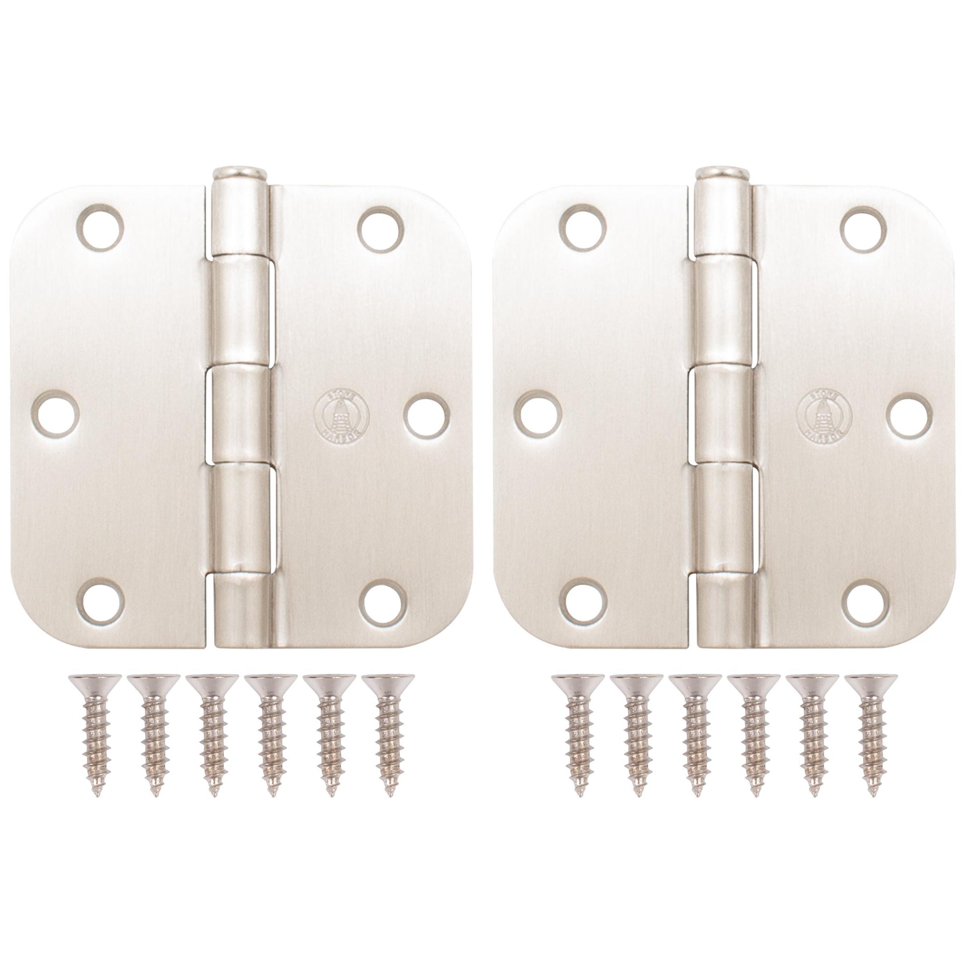 Stone Harbor Hardware 3-1/2" Door Hinges, 5/8" Radius Corner, Satin Nickel, 2-Pack