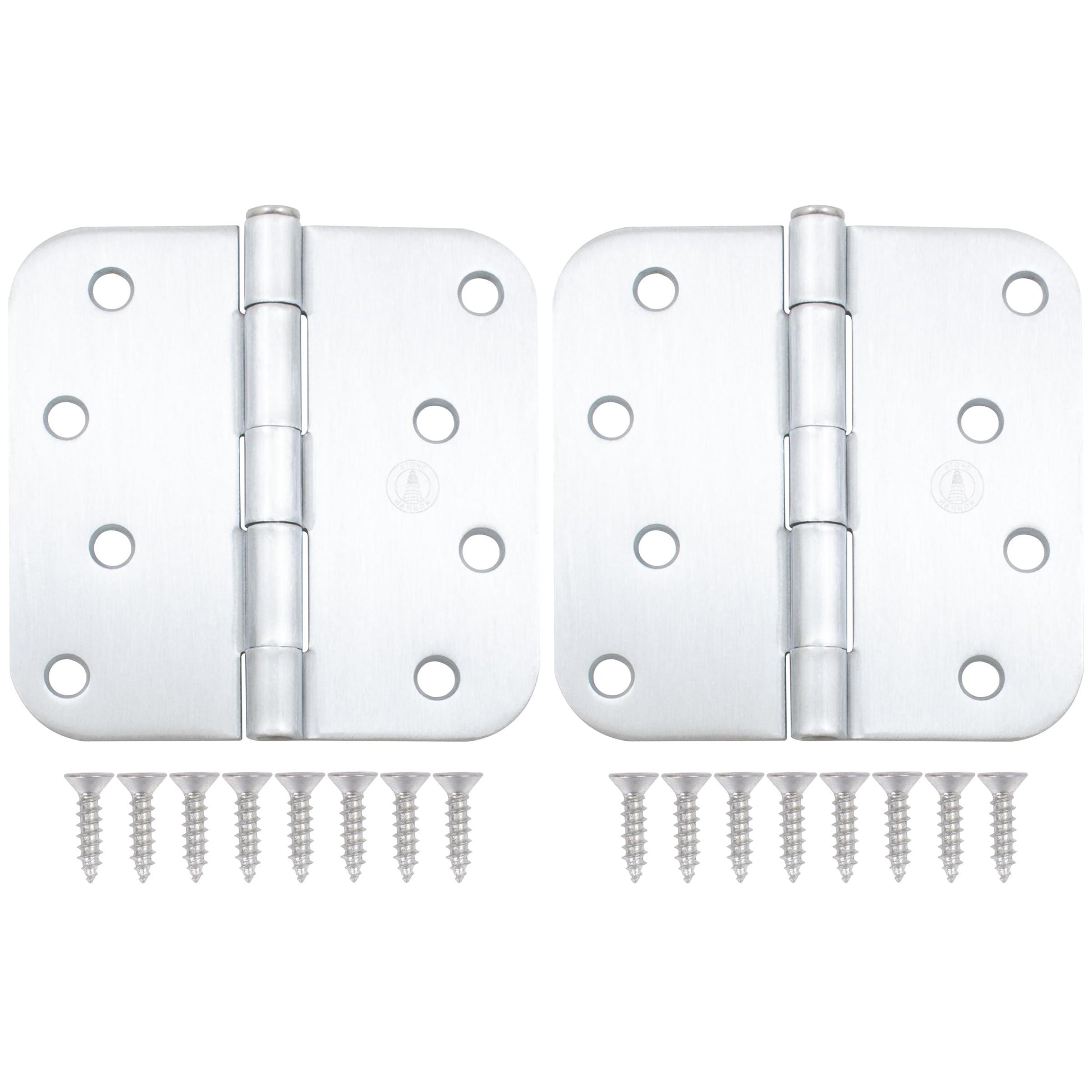 Stone Harbor Hardware 4" Door Hinges, 5/8" Radius Corner, Satin Chrome, 2-Pack