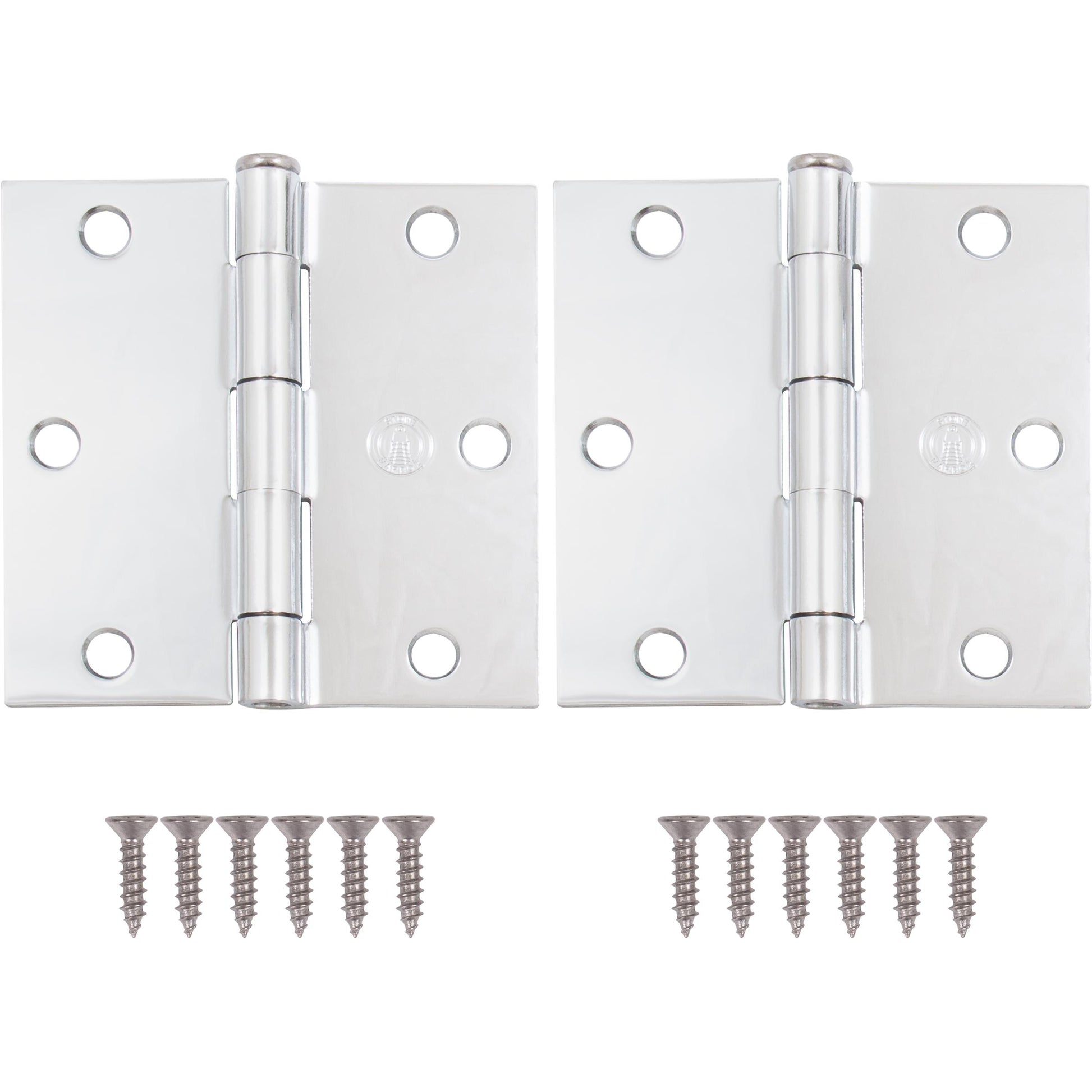 - EASY INSTALLATION: To accommodate customers of various levels of experience, square corner door hinges come equipped with all necessary mounting hardware, including #9 x 3/4" wood screws.