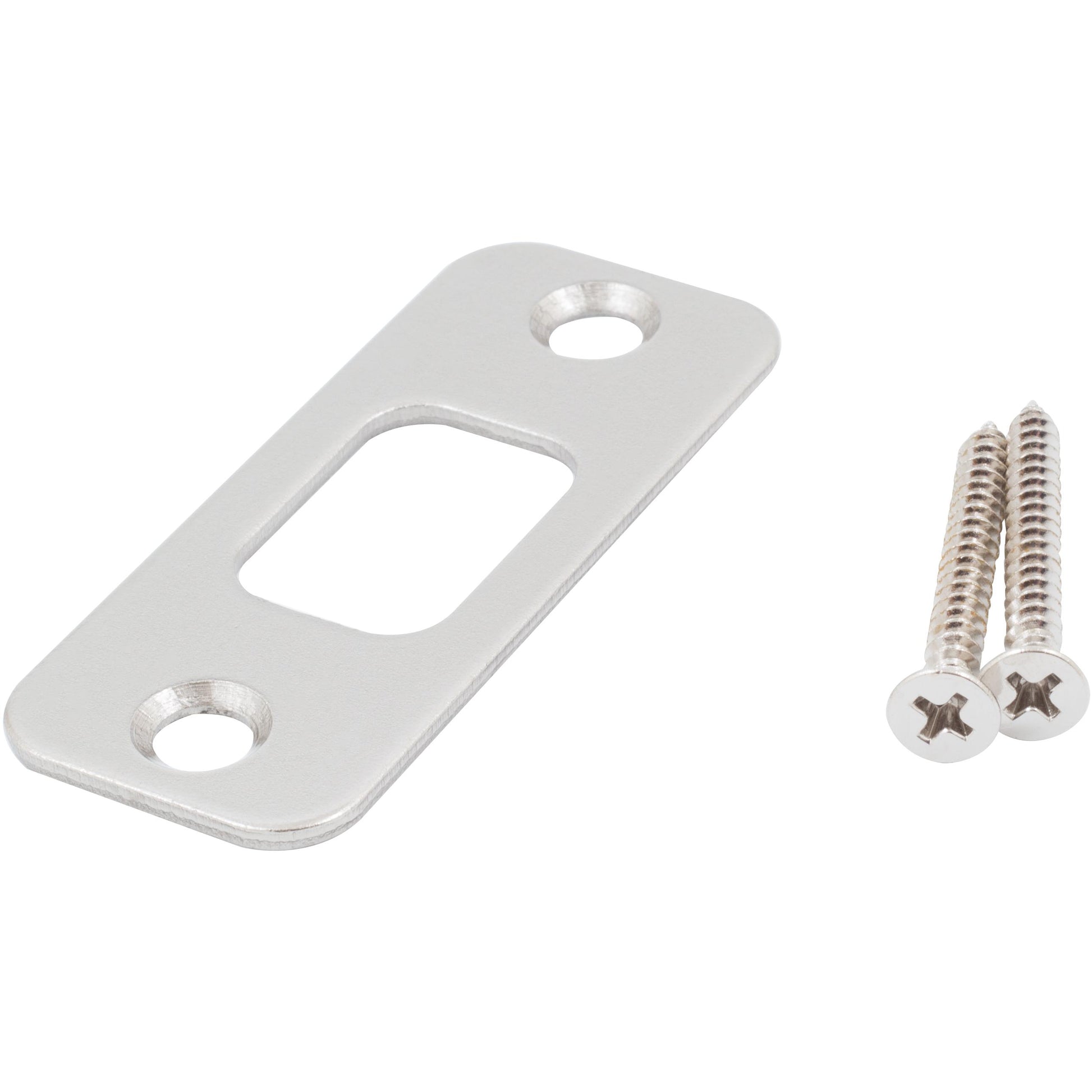 Stone Harbor Hardware Round Corner Deadbolt Strike Plate, 1-1/8" x 2-3/4", 2-1/8" Center-to-Center, Satin Nickel
